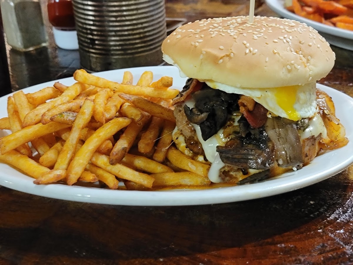 I was in the area looking at things to do and noticed this restaurant with a theme, and I do love a good theme. Parking is plenty, street parking. I got the Filthy Swamp Thing to eat there and the OMG Burger to take home to eat later. It was all so delicious! I could not finish the Filthy Swamp Thing there, so I brought half of it home. Prices were a bit on the high side, but everything was so huge, it was worth it. Service was amazing. The waitress was very friendly. I will be back if I am in the area again!